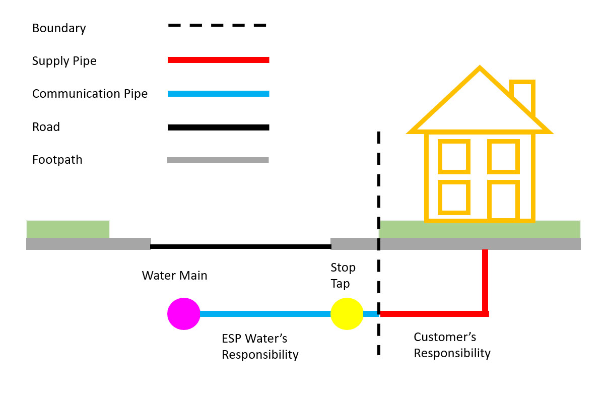 As the water company that supplies your home, we’re responsible for the water mains, communication pipes, and infrastructure on public land, up to your external stop tap. This is the point where your home connects to our network.